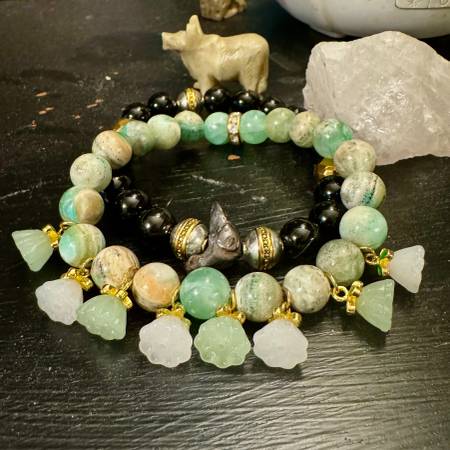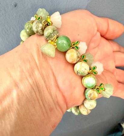 Green Tree Agate & Jade Healing One of a Kind Stretch Bracelet Size 7. - $65 (Inwood / Wash Hts)
