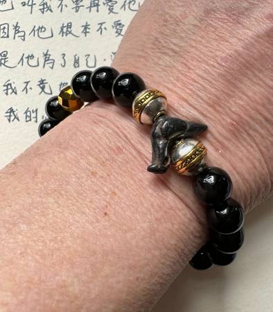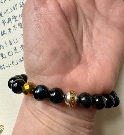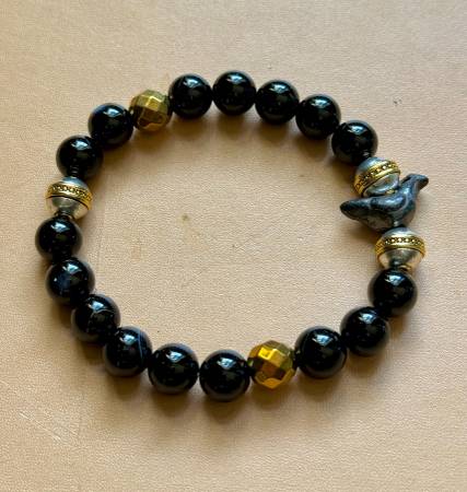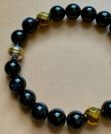 Handmade One of a Kind Onyx & Golden Hematite Stretch Bracelet size 7. - $70 (Inwood / Wash Hts)