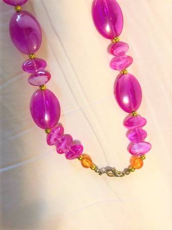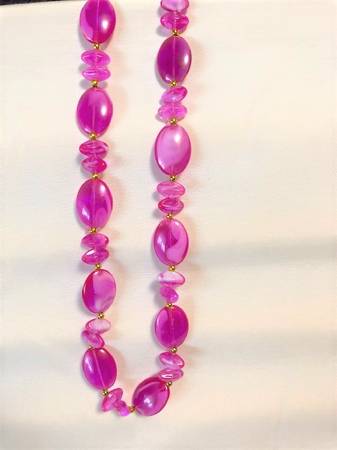 Vintage hot pink & gold beaded necklace, 31" with clasp, excellent condition
