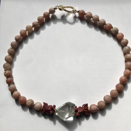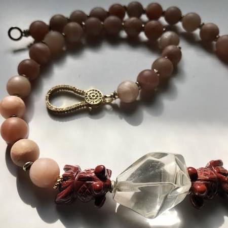 Moonstone, Crystal, and Jasper one-of-a-kind unique necklace.