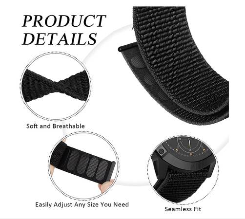 Brand New! Fenix 8 47mm/Fenix 7/6/5/EPIX Gen 2/ Pro 47mm Watch Bands, 22mm Hook & Loop Quick Dry Nylon Sport Replacement Strap for Garmin Fenix 6 Pro/7 pro/5 Plus/Instinct/Forerunner 935- Grey...