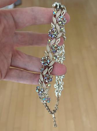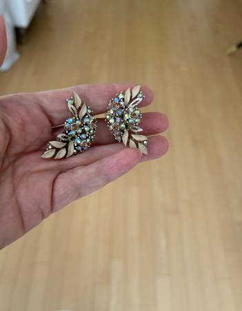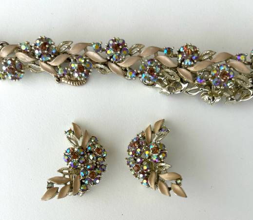 In absolutely beautiful condition, this vintage costume jewelry necklace with matching clip-on earrings is signed by Lisner on the back. $75