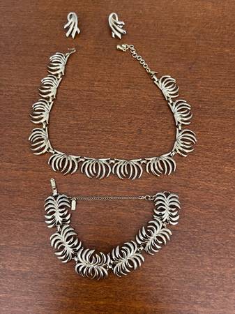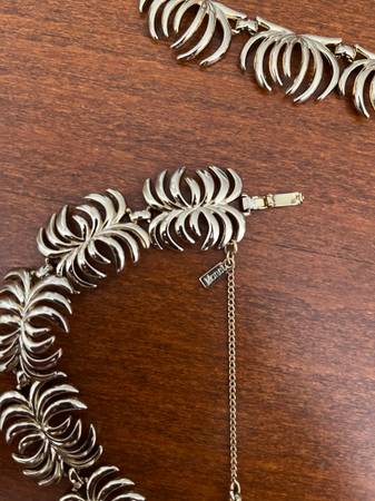 Vintage mid-century Monet gold-tone scalloped designed jewelry set: Necklace 16", bracelet 7", earrings (clip-on) Pick up - upper east side Manhattan Cash only.