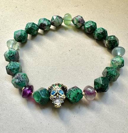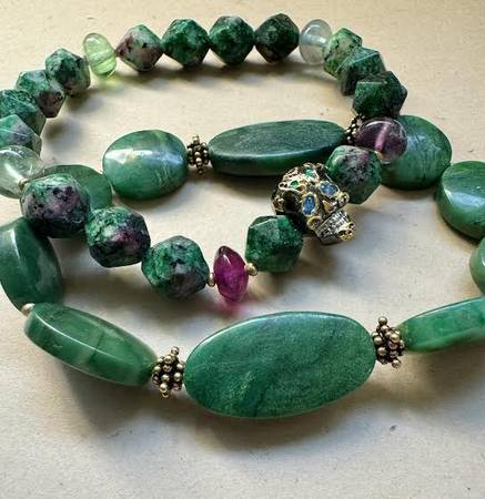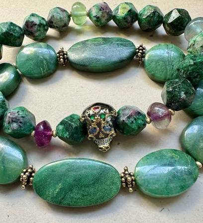 Materials: 1. Zoisite, Fluorite, Focal Bead (Scull) 7 inches