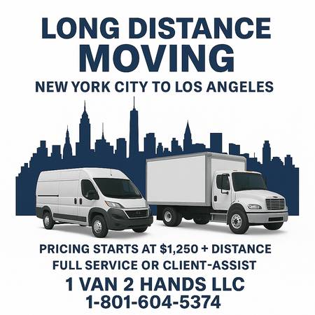 1 Van 2 Hands LLC Cargo Van OR 26 FT Box Truck Full-Service or Client-Assist Now booking DECEMBER moves leaving New York City. Limited slots — book now before routes fill. 📍 ROUTES FROM NEW YORK...