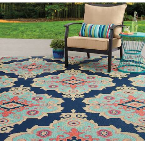 allen + roth 8 x 10 Navy Indoor/Outdoor Floral/Botanical Moroccan Area Rug