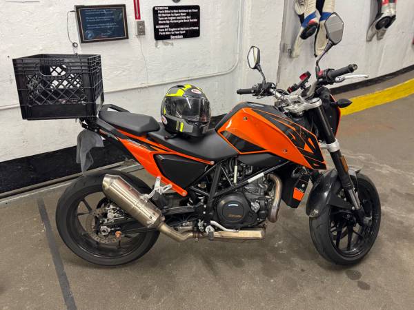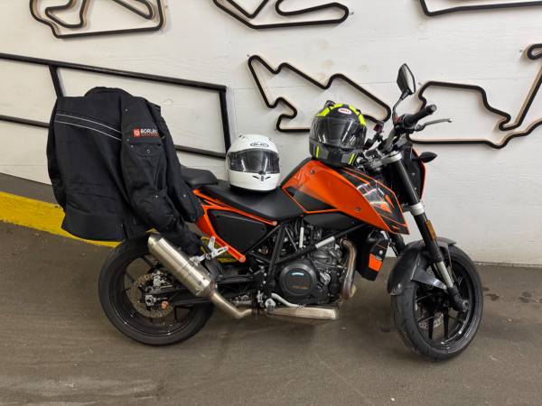 KTM Duke 690 motorcyle. 11,000 miles, clean title, inspection completed 3 months ago. Has ABS brakes front and back. New tires, new battery, new brakes 3 months ago. Lots of torque and acceleration, cruises great on the highway. Very light, only 328LBS. For comparison the Yamaha MT-07 weighs 400LBS. Comes with 2 helmets, 1 armored jacket, 1 airbag vest, cell phone holder and charger, and bike cover free.