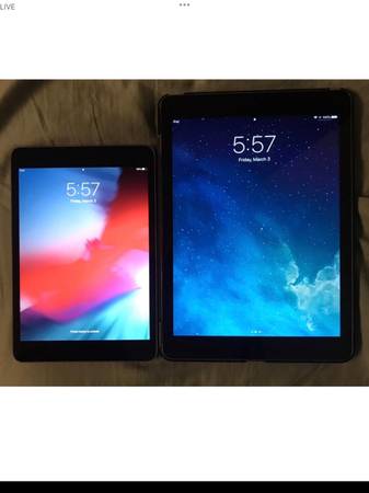 iPad abs iPad mini, unlock can use any carrier, pls look at the photos for reference, mini $90, mini 5 $199, iPad 6,$175. Serious buyer pls reply when you come pickup, if the post’s up it’s...