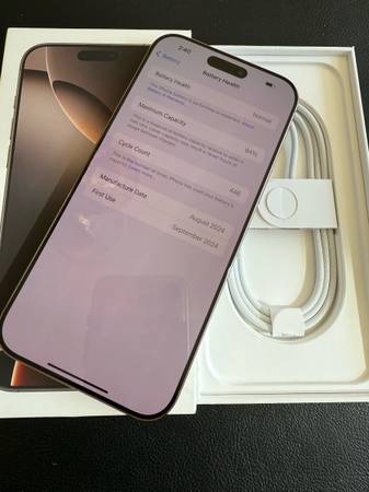 iphone 16 pro Max 512GB unlocked No SIM restrictions Battery health 94% Excellent condition No shipping Nomad Manhattan In person cash only 646 653 99 nine five Text me