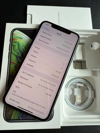iPhone XS 64GB unlocked Black Battery health 81% I’m in manhattan Pickup cash only 646653 999five Text me