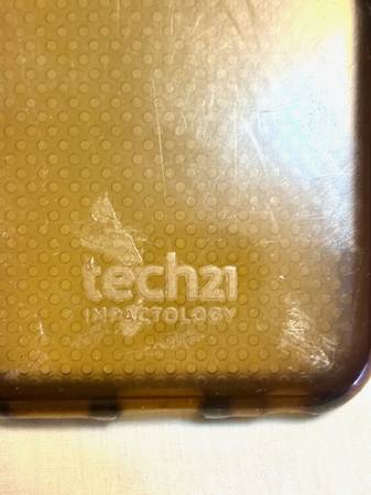 Tech 21 thin case for iPhone 5c, clear with orange border, impact protection case, gently-used