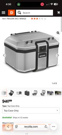 Rugged and secure, a Shad Terra top case features aluminum construction and stainless steel hinges and locking mechanism. It's equipped with tie down points on its lid for lashing down additional gear and can be outfitted with optional backrest pads for your passenger's touring convenience. The Terra case has a double-profile rubber edge gasket to ensure your packed gear stays dry. A single lock cylinder is used to open and close the case and disconnect the case from a mounting plate. As a modular component, the TR48 requires either an aluminum D1BTRPA Premium Mounting Plate or a reinforced-plastic D1B48PA Universal Top Case Mounting Plate in addition to a bike-specific top case rack. Shad top case racks are available for most adventure and sport touring motorcycles, search "Shad Top Case Racks" for a bike-specific mounting option.