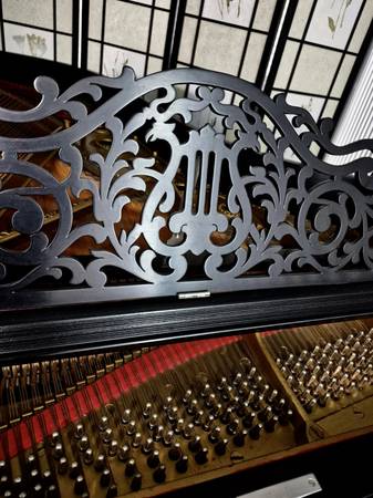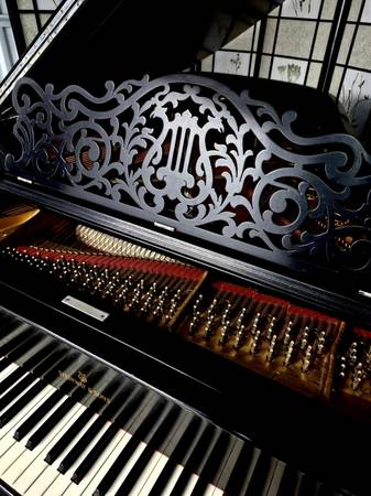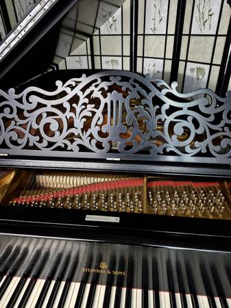Stunning Vintage Victorian Style Steinway B. Known as the “perfect grand,” this Model B delivers concert-level power with rich, warm tone and exceptional touch. Elegant Victorian style, featuring an ornate, hand-carved music desk, classic satin ebony finish, and timeless craftsmanship from Steinway’s most sought-after era. Just voiced and regulated. Responsive action. Owned by one previous family and was well-maintained. Recently rebuilt and fully refinished, this piano has been upgraded with new strings, tuning pins, dampers, hammers, shanks, and bridge caps. The soundboard has been revarnished, the plate regilded, and the keytops and bushings replaced—giving it the look, feel, and performance of a beautifully restored Steinway.