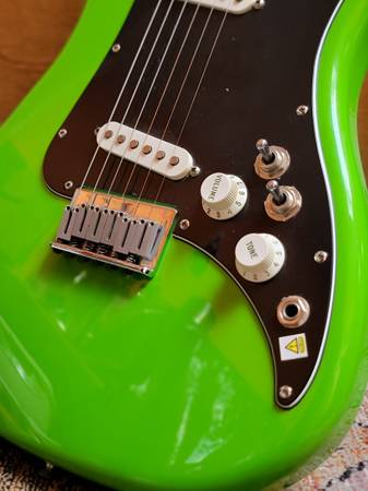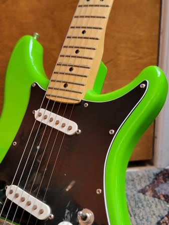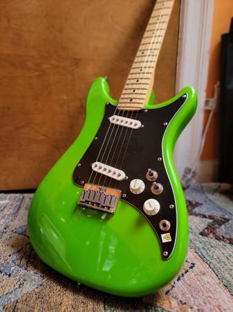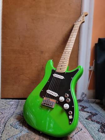 You love a green guitar? Good. I don't love a green guitar. Bad. Price to sell.