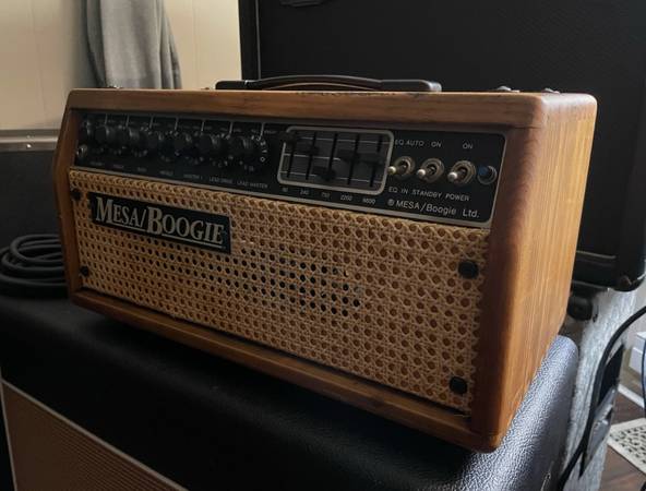 I'm looking to move this along, since it turns out it's not really my jam. It's a 1985 Mesa Mark III+ no stripe HRG head (100/60 watt, Reverb, Graphic EQ). Natural finish head shell, with wicker front.