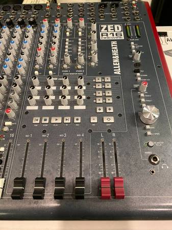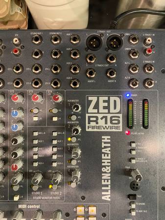 I am selling this used Allen & Heath ZED R16 Firewire Console Mixer. ***NOTE - this is a FIREWIRE unit*** So to use the digital "audio card" capability, you will have to connect to a machine with a firewire cable and you may or may not need the appropriate drivers installed: