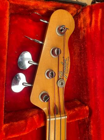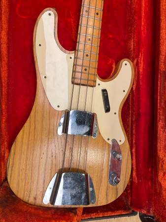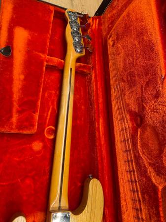 It pains me to post the best vintage Fender bass I’ve owned — an absolutely stunning, featherweight ‘68 Tele Bass. This is the earliest version with single coil / no humbucker, wildly lightweight, with very old natural refin, original case, all original components other than the pickguard. The neck is god tier. The tone is as good as it gets. It’s hard to find one like this; whoever buys it will never want to let it go. 3200 without original case, 3500 with original case. Not interested in trades. Thanks!