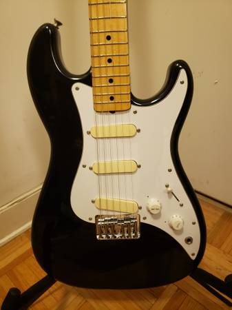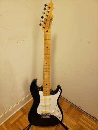 Fender 1983 Black Fender Telecaster Headstock Stratocaster Squier Bullet Electric Guitar. Model ST-3 SQ Series, Brand: Fender, Type: Electric Guitar, Body Color: Black, Country/Region of Manufacture: Japan, Body Type: Solid, Size: 4/4, Neck Material: Maple, Number of Frets: 22, Series: Fender Bullet, Model Year: 1983, Body Material: Rosewood, Fretboard Material: Rosewood, Model: Squire. Great condition and sound great for a 42 year old guitar! Price $700. Also, comes with a Fender hard case. If interested, leave a phone number (no text or email). Cash, local pick-up and no trade.