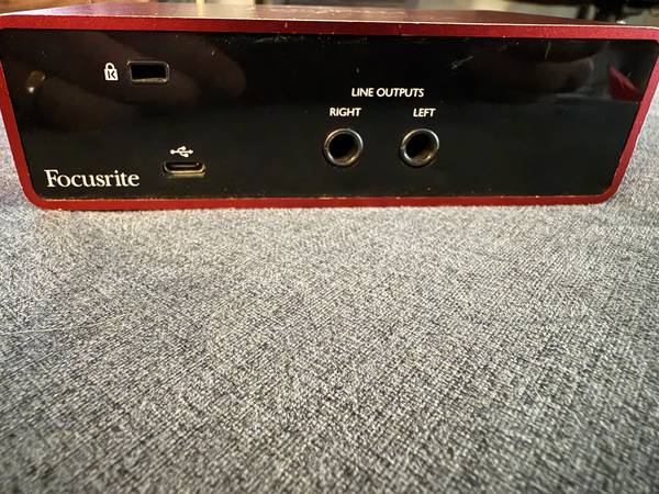 Used Scarlett Solo Preamp for sale. Preamp served me well for several years and I have since upgraded to a larger model. The USB connection is damaged but otherwise works perfectly - this unit is great for salvage, someone who can repair the USB unit, or will only need the line outputs. For local pickup.