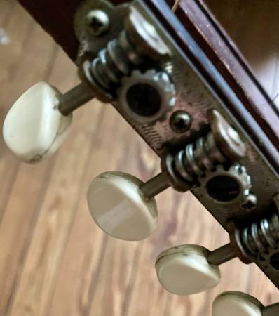 Shows some wear: pick scratches, small dings, one tuning key has a slightly-bent shaft that does not affect stability of tuning.