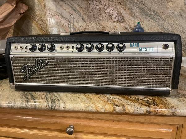 Beautiful condition 1968 Fender Bandmaster head. I believe it’s the original slip cover. Circuit, trannies, etc are all original; extension cab output is currently disconnected but can be...