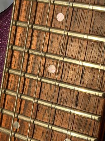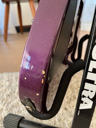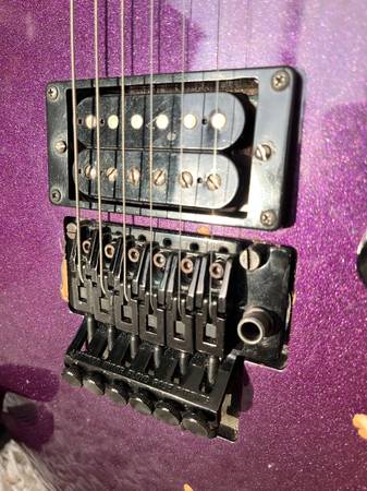 Squier Stagemaster with Floyd Rose-licensed tremolo Discontinued model, rare metallic purple finish Used, some cosmetic scars that give it character. Works fine, no issues. I've installed a wood...