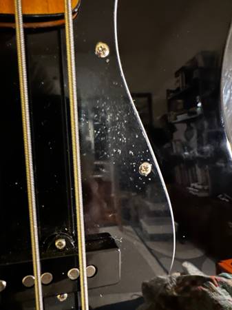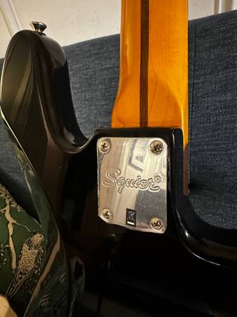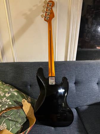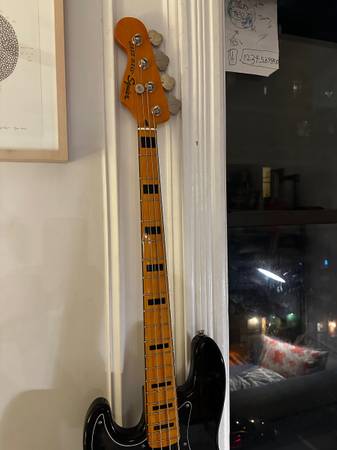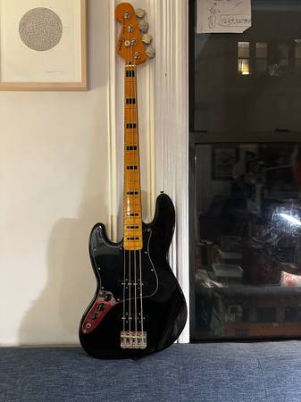 Squire 70s Classic Vibe Jazz Bass finished in black on black. Rarely played and with only few dings on the pick guard, this bass is ready to play and in great condition. All electronics are in excellent, working condition, and the sound is fantastic as one would expect from Fender.