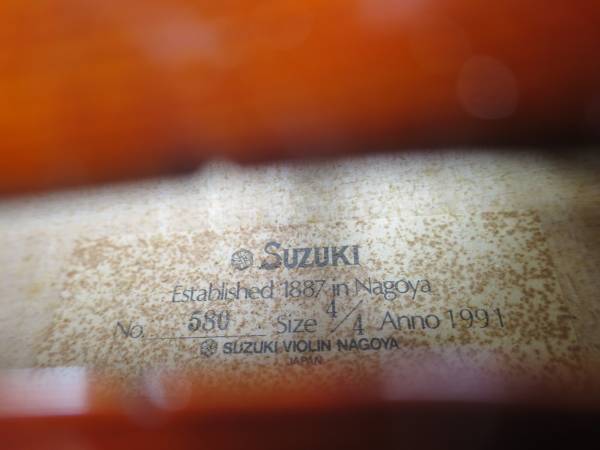 For price reference, in 1991, the year this violin was made, the No. 580 model was priced at 1.65x relative to Suzuki's highly popular No. 540 "advanced" model. In recent years, the No. 540 was listed by Suzuki at ¥198,000 (which was equal to roughly $2,000).
