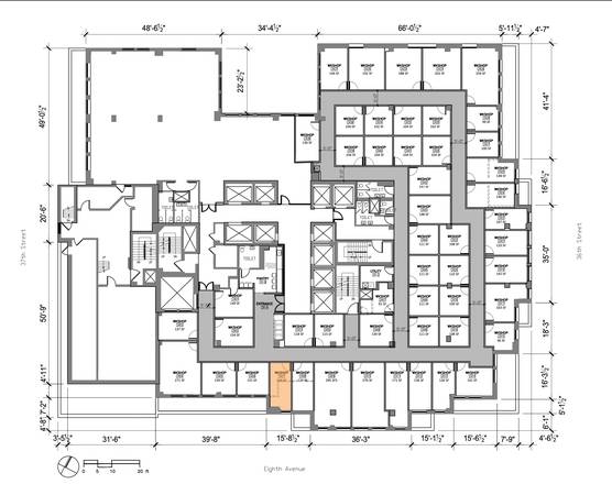 Studio 2407 is an inspiring west-facing space with a window overlooking 8th Avenue, offering beautiful afternoon light and a direct connection to the energy of the city. Its long, streamlined layout makes it perfect for artists who enjoy working in a space that flows—whether you’re setting up an easel, a drafting table, or a sculpting station.