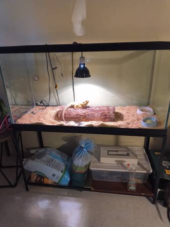 Selling my 3 year old bearded dragon Includes: 90 gallon tank and stand included with, daylight lamp and heating pad as well the logs humidifier gauge and digital thermometer. $200.00 not going any...