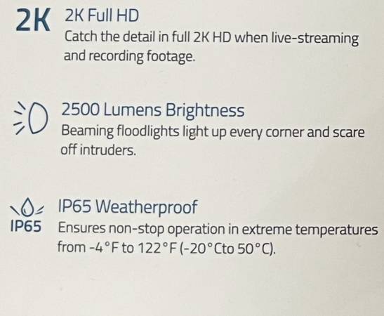 POWERFUL FLOODLIGHT CAMERA WITH 2K FULL HD RECORDING SEE PHOTOS FOR DETAILED DESCRIPTION. BRAND NEW. PACKAGE OS STILL SEALED.