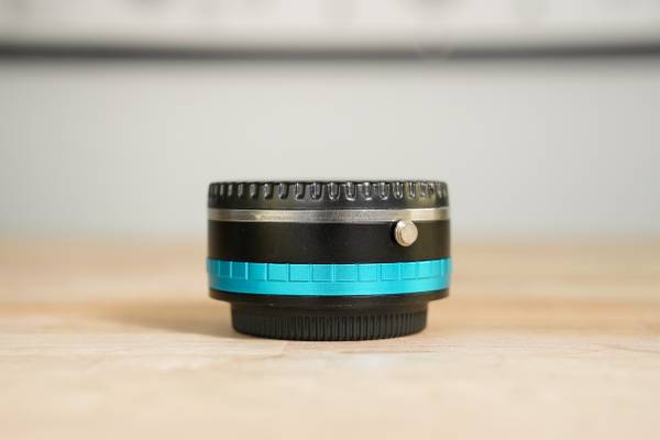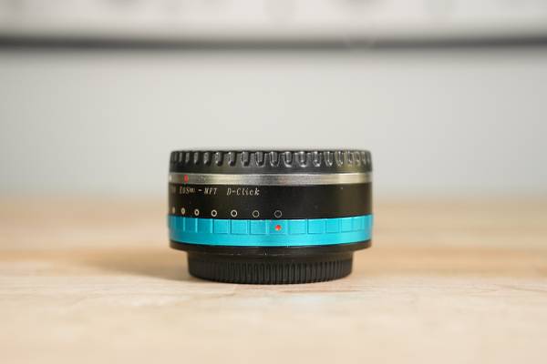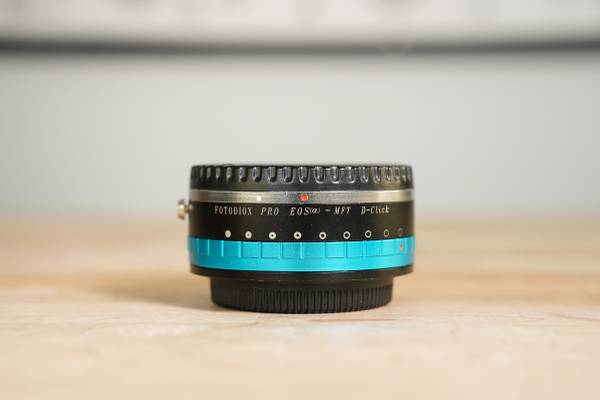 This Fotodiox Pro Lens Mount Adapter is in good condition. It’s used to adapt Canon EF lenses to Micro Four Thirds camera bodies and has built-in aperture iris. This adapter has been tested and is working properly without issues.