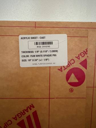 AVAILABLE: 2 sheets White Opaque P-95 (one side matte/one side glossy) 1/8" thick BRAND NEW 18" x 32" $20.00 each