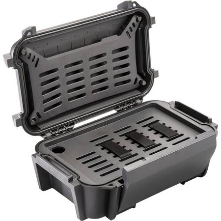 Store, protect, and transport a small item such as a cellphone plus related small accessories with this R60 Ruck Case in black from Pelican. This IP68-rated, watertight, and dustproof case features a flexible lid organizer and a built-in purge valve. Users will appreciate the dual-pivot latch, rubberized exo-skeleton, and ABS outer shell. Carry the case by hand or with the multiple external attachment points.