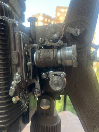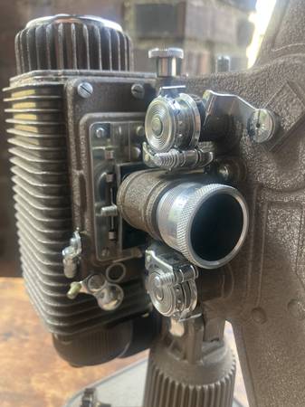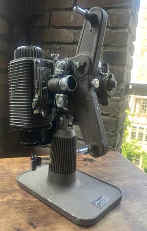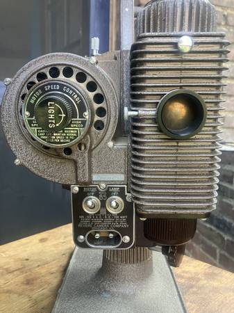 The product is a vintage 1940s Revere Eight 8mm Reel to Reel Movie Projector Model 85, made in the United States. This projector is able to showcase 8mm movie films, providing a nostalgic viewing experience for enthusiasts of old film formats. The Revere brand is known for its quality and durability, making this projector a valuable find for collectors or those looking to enjoy classic cinema in its original format. This projector is in proper working condition. All of the sprockets are in proper working order.