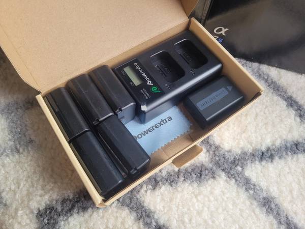 -6 batteries (two OEM, four aftermarket) and a USB-powered battery charger