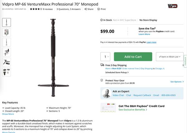 I understand why this monopod is only $99 new and not $200 like the Cobras - It's release mechanism takes a little getting used to, sometimes you have to extend upwards an inch or two before it will collapse down - thats it!