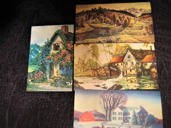 The second picture shows 3 scenes that are about 4" by 7' and one that is 6" by 4". The cost of these 4 is $20.