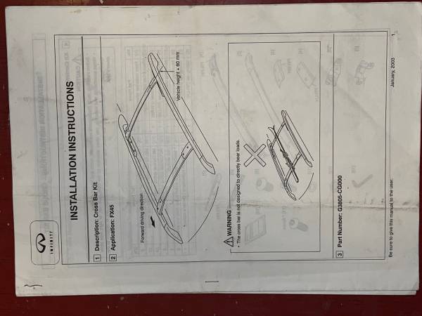 Infiniti FX Factory Crossbars for placing bicycles, Canoes , skis etc on the roof of your Infiniti Car