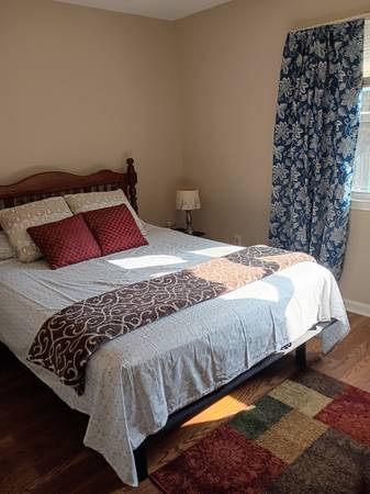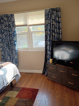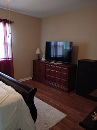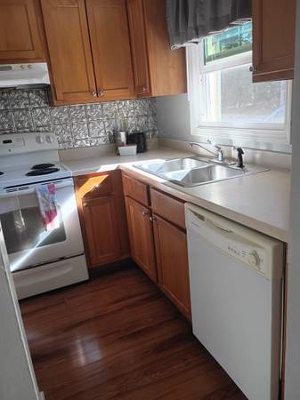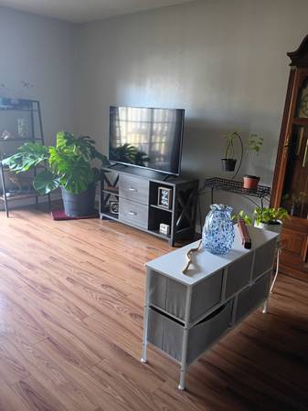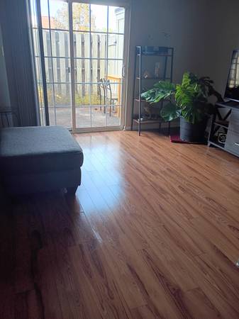 New laminate flooring (zero wall to wall carpeting, carpet just on stairs to 2nd floor)
