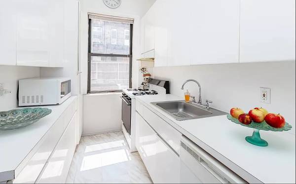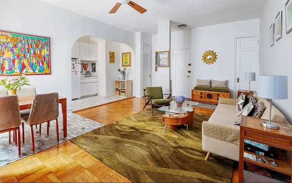 Quiet rear facing one story above street level. Three exposures, 10 foot ceilings, recessed overhead lighting, hardwood floors throughout, deep double closets and recently painted. The living room is very large, perfect for entertaining. Windowed galley kitchen with ample cabinets and counter space.