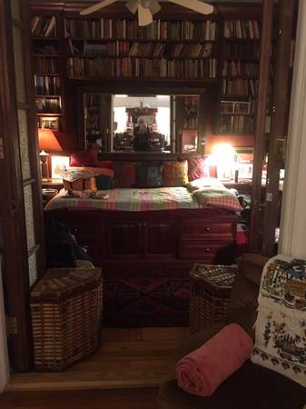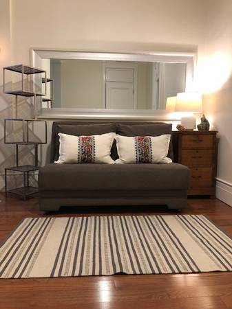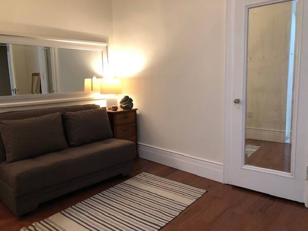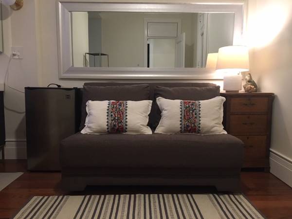 THE BEDROOM FOR RENT is newly renovated with a high-end private en suite bathroom (ADA compliant). It's fully furnished: comfortable sleeper couch, deep closet, mini refrigerator, microwave, coffee-maker, and AC. It's hooked-up for cable TV, and has WI-FI. Renters welcome to add or remove furniture/decor as needed.