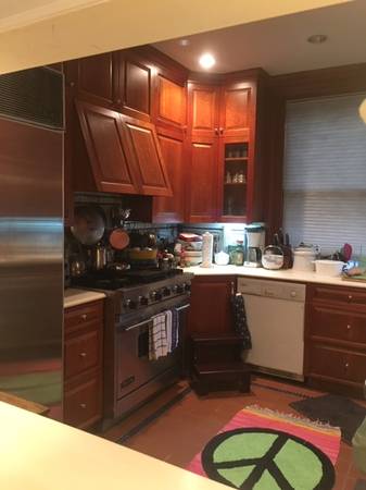 THE APARTMENT is warm and beautiful, with old-world charm: wood furniture and built-ins, wood floors, full living and dining rooms with a kitchen pass-through, and tree views. It faces a quiet backyard