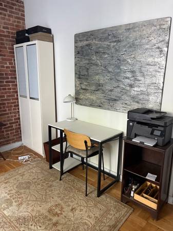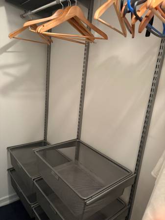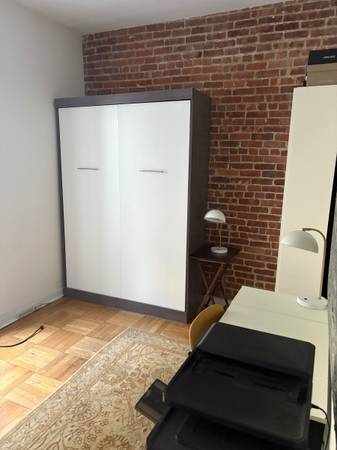 Fully furnished room with a very comfortable Full size Murphy bed. Huge walk in closet with slide out drawers.