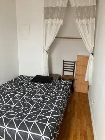 Share Sunny WALK-UP (Penthouse Oasis) with ONE Considerate, Professional, Responsible Roommate and a CAT. Eight windows, NWS exposures. Long-Term Preferred (Six Month Minimum). SMOKE/VAPE in One Room Only (w/air purifier, open window&fan). FURNISHED 7x12 Share Bedroom has: Window/AC unit, Queen Bed, Armoire with Fold-Out Desktop, floor-to-ceiling Closet & More. Well-maintained common rooms have good wood floors, wool carpets, above-average furnishings and (mostly) Happy Houseplants. All-Ways Clean White Tile Bathroom has Window, full bathtub/shower, separate medicine cabinets. Bike rack in back courtyard.