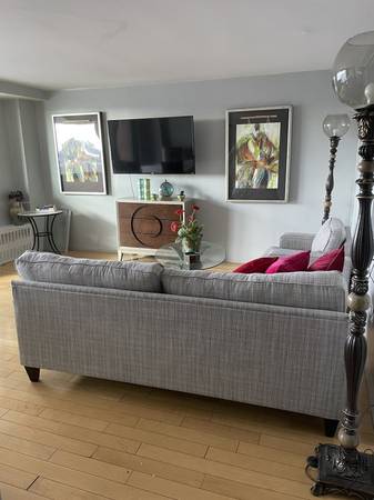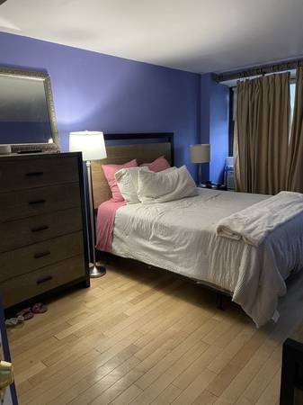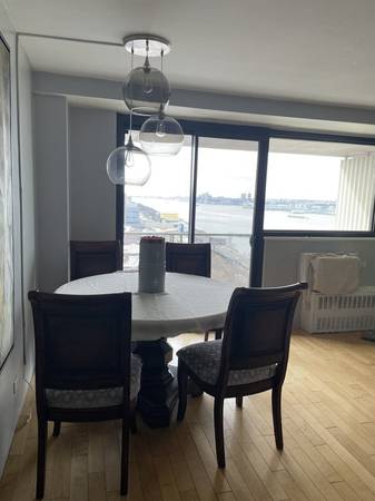 The rent would be $1050 month, with a security deposit of $700 to share an apartment with your own bedroom (15? x12"). The apart has 24 hour security and a laundry room on premises. There is one large closets, so closet space shouldn't be an issue. There is a full kitchen with new appliances, 1 bathroom newly renovated, and a large living room with an amazing view, and each bedroom has a really nice view looking out onto the Henry Hudson River