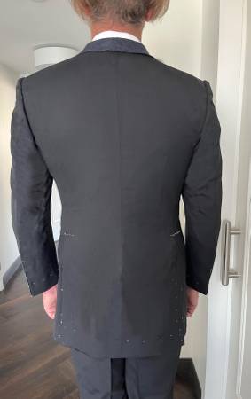 dinner suits, tuxedos, coats, kaftans, pants, skirts, soft accessories.