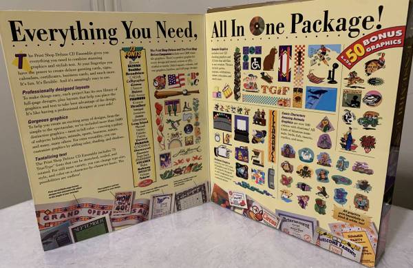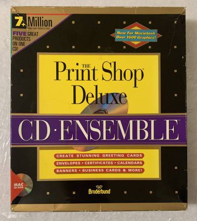 vintage 1994 Broderbund Print Shop CD Ensemble ($40) ---------------------------------------------------------------------- GOOD WORKING CONDITION - IN ORIGINAL BOX WITH ORIGINAL PACKAGING AND...