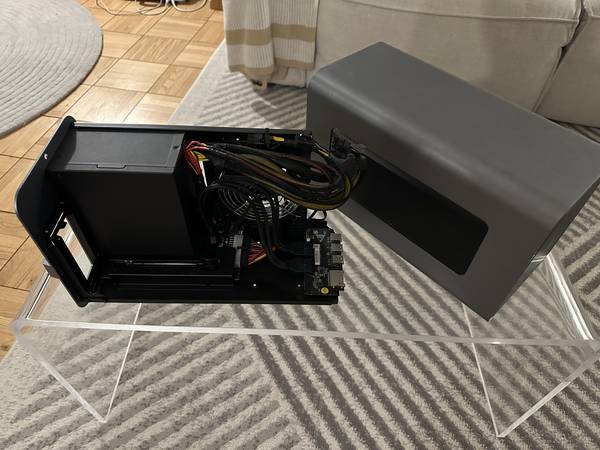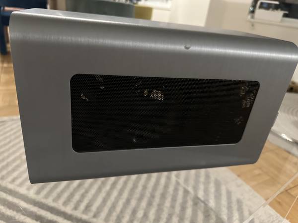 Used lightly for a VR laptop setup before upgrading to a desktop. Fully functional and clean. Adds desktop-class GPU performance to any Thunderbolt 3 laptop or Intel-based Mac. Great for VR, gaming, GPU compute, ML, and general acceleration.