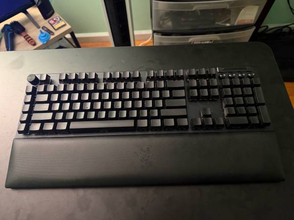 Keyboard is overall and cosmetic condition and has all of its original working features. They including the command dial and custom macro peas chroma RGB lighting works just fine as well as the magnetic wrist rest.